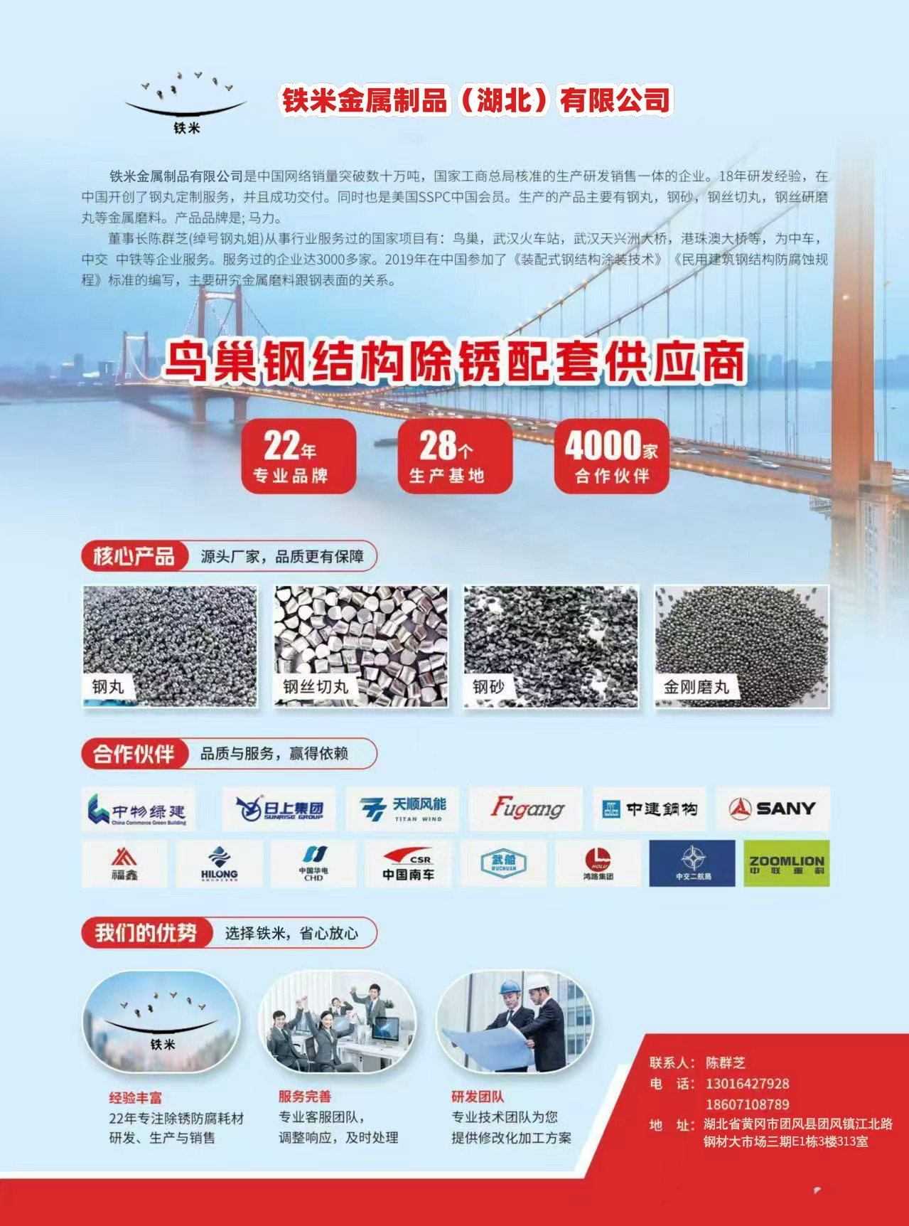 在鄂东工业走廊的核心腹地黄冈团风,一颗金属磨料行业的“新星”正冉冉升起。2022年1月成立的铁米金属制品(湖北)有限公司(简称“铁米金属”),由武汉铁米钢丸与国家工商总局核准的铁米钢丸品牌联合注资组建,以8123万元注册资本扎根城南工业园,凭借国内首条可视化智能制造产线的硬核实力,迅速成长为金属磨料领域集研发、生产、销售于一体的创新型企业,为装备制造、精密加工、船舶重工等领域提供高品质金属处理耗材与定制化解决方案。一、品牌根基:双强联合的智造基因铁米金属的